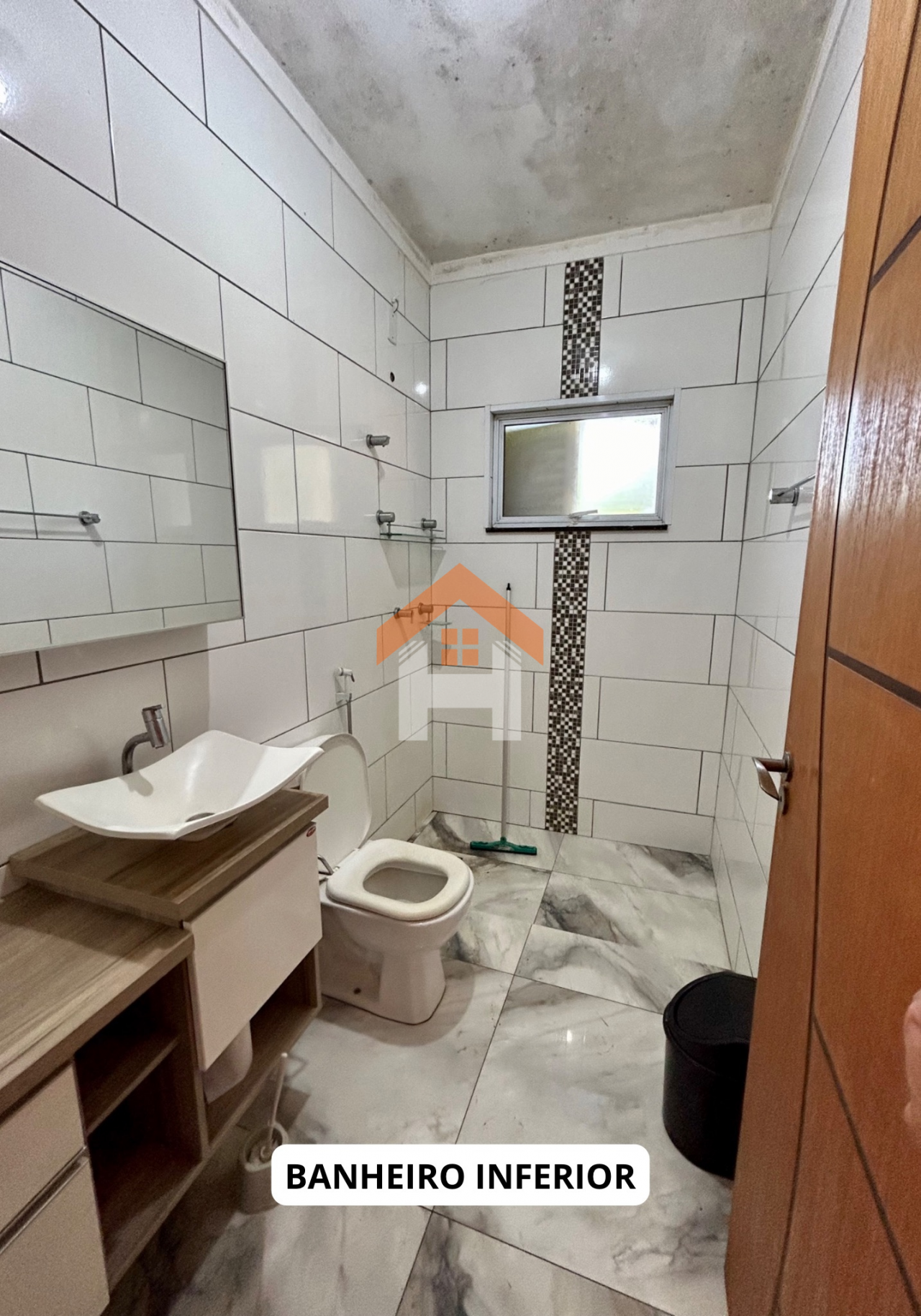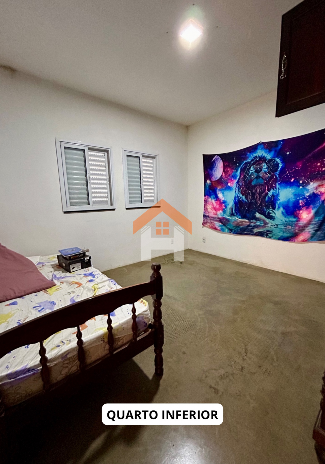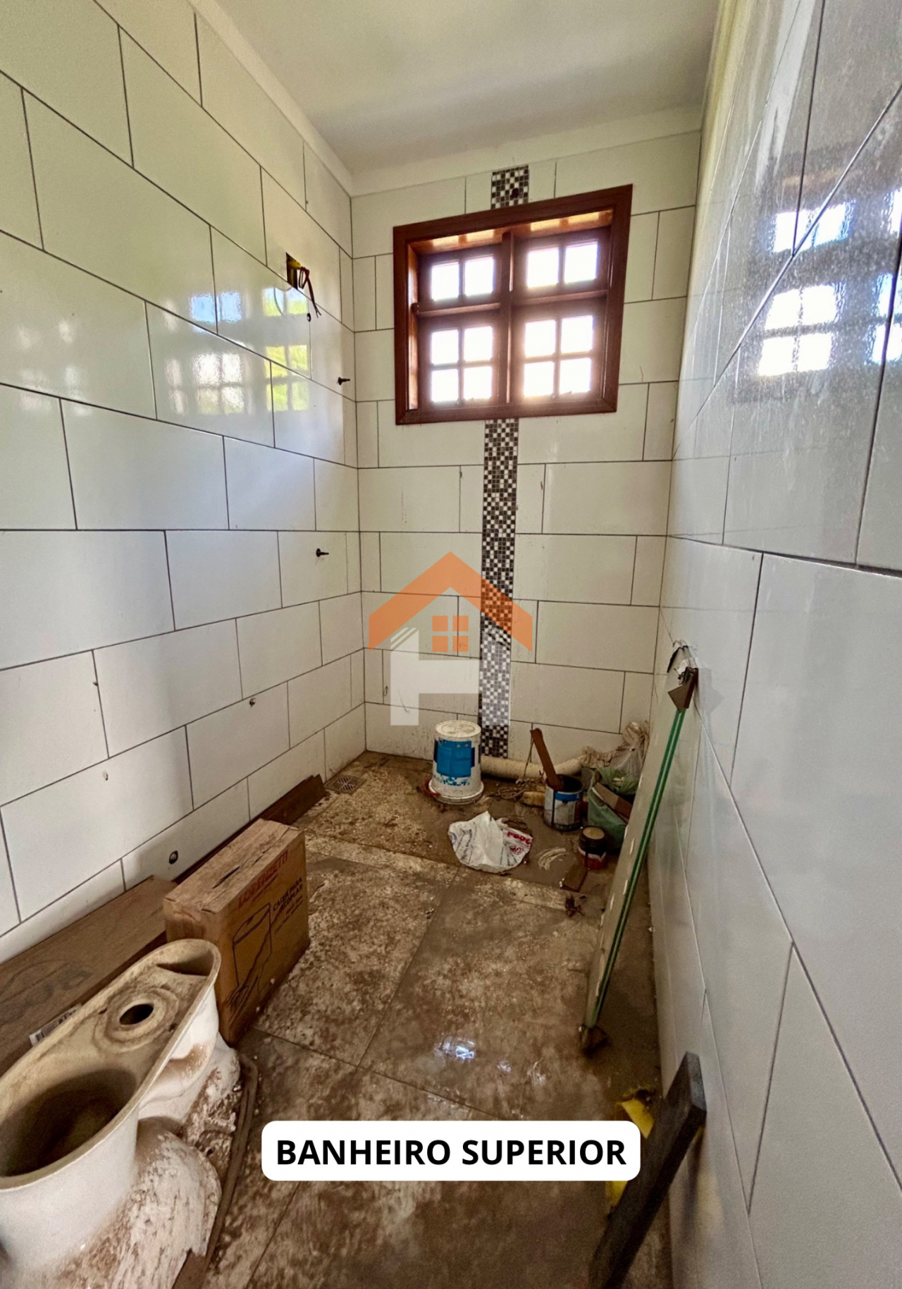 Ampla área verde, garagem coberta, piscina, cozinha, sala, um dormitório, banheiro, lavanderia, e na parte superior suíte com deck e linda vista